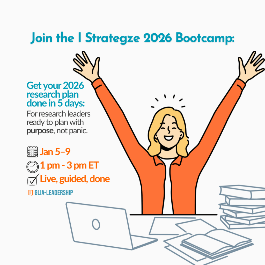 And, if you do decide to join Research Leadership Mastery, you’ll get a gentle head start in 2026: you can join our “I strategize 2026” Bootcamp (January 5–9) for free. In that week, we’ll connect your long-term want-to-achieves with next year’s must-achieves and sketch a plan that feels realistic for a human nervous system, not just for an idealized calendar.